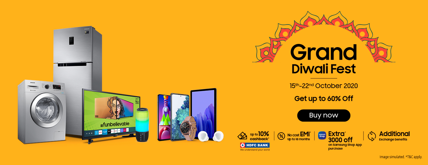 Samsung has also tied up with leading banks – HDFC, ICICI Bank and SBI – so that consumers shopping online from Samsung.com can enjoy up to 12.5% cashback on their purchase this festive season.