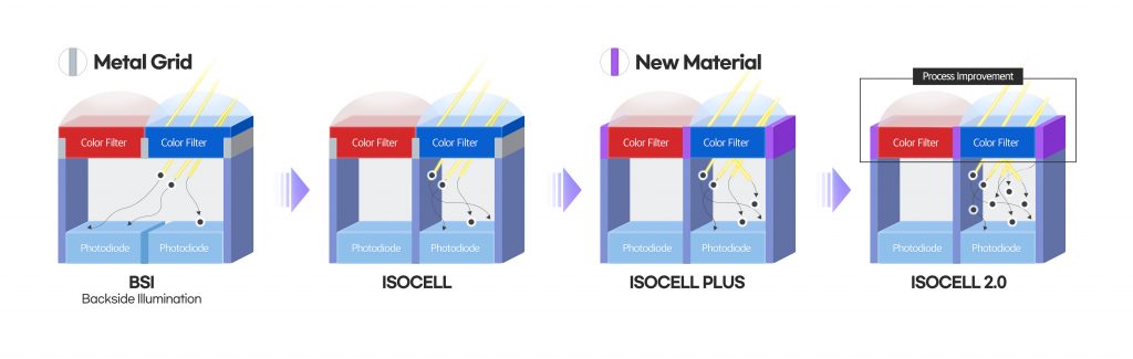 In the latest 0.7μm products to be introduced later this year, Samsung will start rolling out an enhanced pixel technology, ISOCELL 2.0, which allows excellent performance despite the challenges with decreasing pixel sizes. The new technology further enhanced the wall structure between cells, resulting in added light sensitivity of up to 12 percent compared to the current ISOCELL Plus technology.