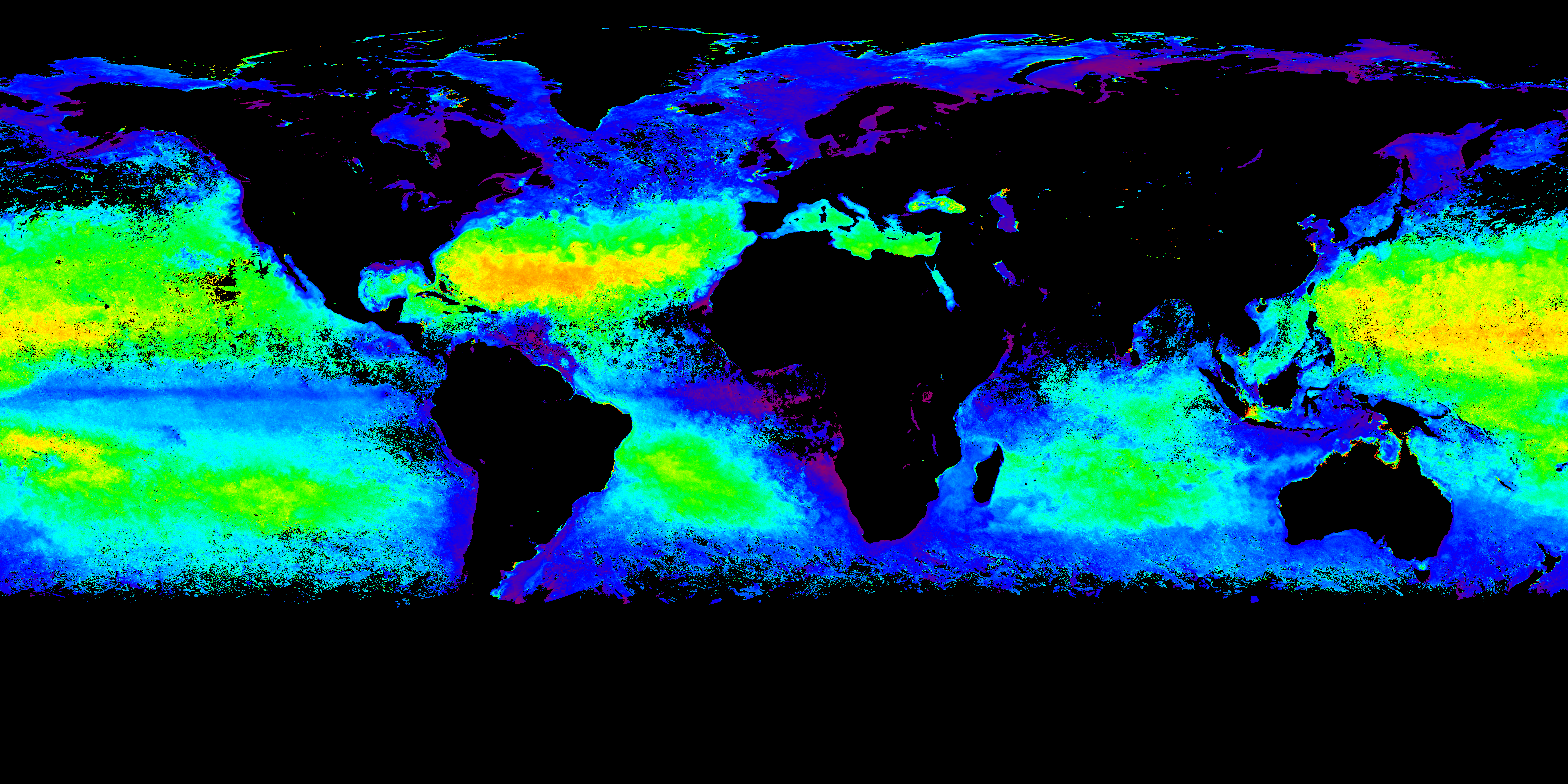 Right now, the VIIRS satellite takes measurements from 5 wavebands in the visible region of the electro-magnetic spectrum. The new Plankton, Aerosol, Cloud, and ocean Ecosystem (PACE) satellite, planned for launch in 2022, will bring us information from many more wavelengths. A lot of information about the ocean is hidden in the details – the small bumps and wiggles across the spectrum. With this additional detail, scientists are hoping to discover more about one of the ocean’s most important (and tiniest) inhabitants: phytoplankton.