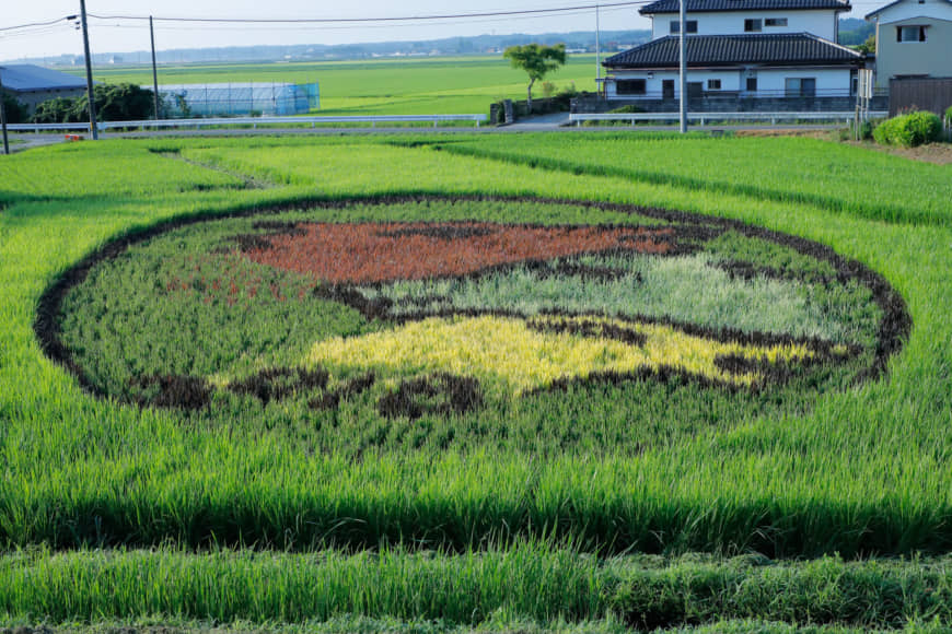 The annual project began in 2014, the first year rice could be grown in affected areas. It involves planting different varieties of rice in a pattern so they become an image as they grow, a move designed to boost local morale and draw positive attention to the region.