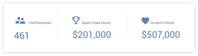 2019 has been another record-breaking year for us, thanks to our researchers! We paid out over $6.5 million in rewards, doubling what we’ve ever paid in a single year. At the same time our researchers decided to donate an all-time-high of $500,000 to charity this year. That’s 5x the amount we have ever previously donated in a single year. Thanks so much for your hard work and generous giving!
