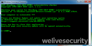 When run, the program will report if the system is vulnerable to exploitation, if the system is patched against exploitation, or if the system is not vulnerable to BlueKeep exploitation. In the event the system is vulnerable, the tool will take the user to the web page to download the appropriate patch on Microsoft’s web site.