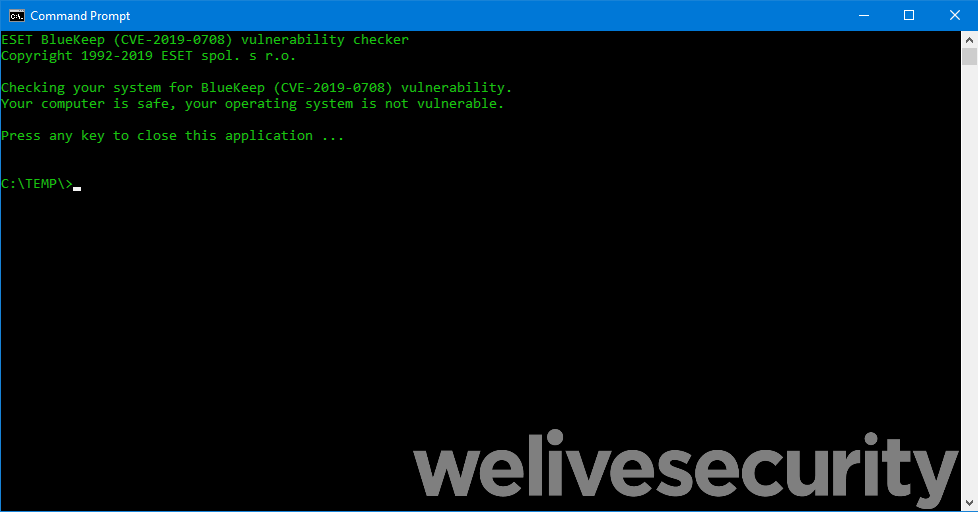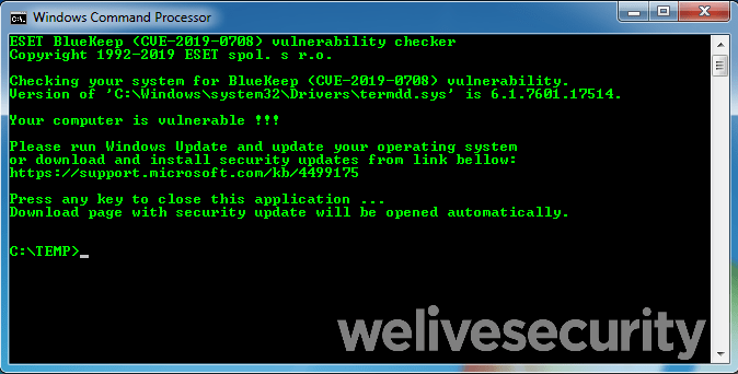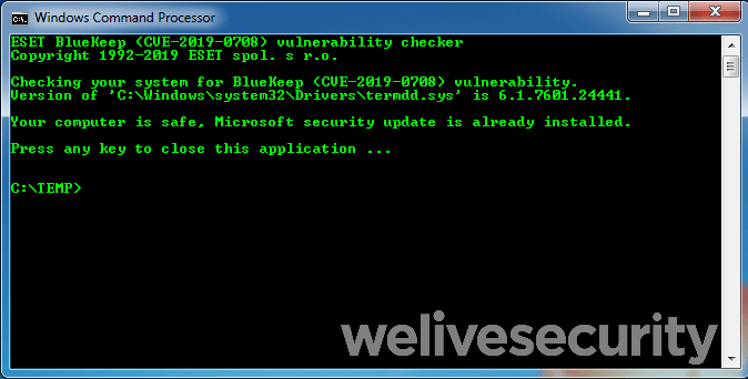 Using ESET’s BlueKeep (CVE-2019-0708) vulnerability checker