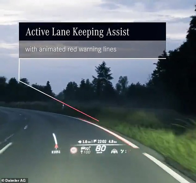 The display will also use these red warning lines to show if a driver is getting too close to the side of the road or is in danger of drifting into another lane.