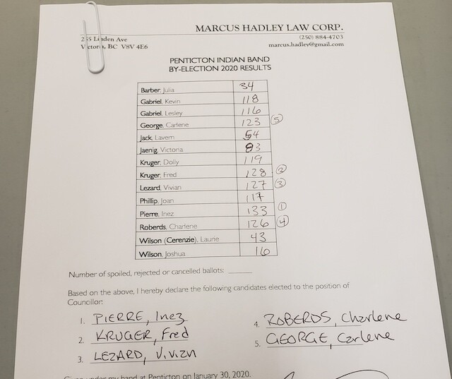 The Penticton Indian Band elected five new councillors in a byelection Thursday, the end of a lengthy appeal process that saw the results of a 2017 byelection overturned.