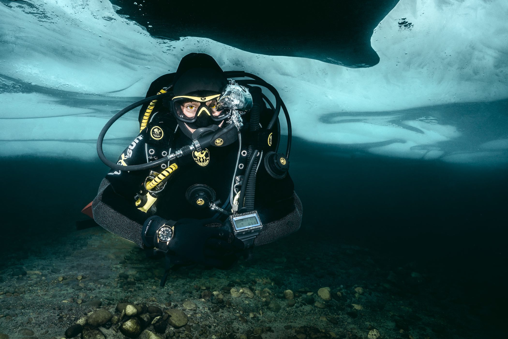 Craftsmen show us what people can make, the Earth teaches us humility. If one goes to dive in one of the most remote and hostile environments, the preparation must be impeccable and the equipment even better. The watch for this daring exercise is exactly that. It is a very reliable, rugged tool watch. Its main purpose is as a back-up instrument in case the hi-tech diving computers fail. Depending on this equipment, the divers and artists did what they intended to do: show us the beauty of the crystal clear Lake Baikal.