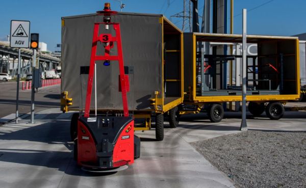Each outdoor AGV and their carriages make up a 25-metre convoy with a maximum transport capacity of 10 tonnes and cover routes of 3.5 kilometres in length. Thanks to SLAM navigation, these vehicles are not guided by magnetic tape or wires, so maintenance costs are reduced, they are more versatile to adapt to new routes and their installation does not require any construction. Altogether, the eight AGVs travel 240 kilometres a day.