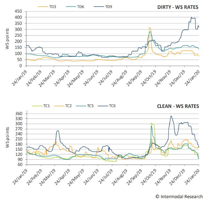 According to Intermodal’s analyst, “overall, NOC’s declaration of force majeure can allow Libya, which holds Africa’s largest-proven oil reserves, to legally suspend delivery contracts. Having said that, pressure from the negative financial effects on participants will hopefully lead to a resolution of the current turmoil sooner rather than later. Obviously this is a complex political condition with multiple effects and economic impact while the recent Berlin summit tried to take a step closer to achieving peace in the area”.