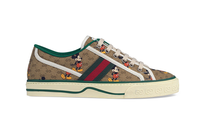 Breathing new life into the 1977 Tennis sneaker, the brand’s latest release features a distinct low-top model in seven new colorways. Offering a selection for both men and women, the new designs incorporate an assortment of recognizable Disney x Gucci Mickey Mouse prints, monogram styles and solid colored sneakers.